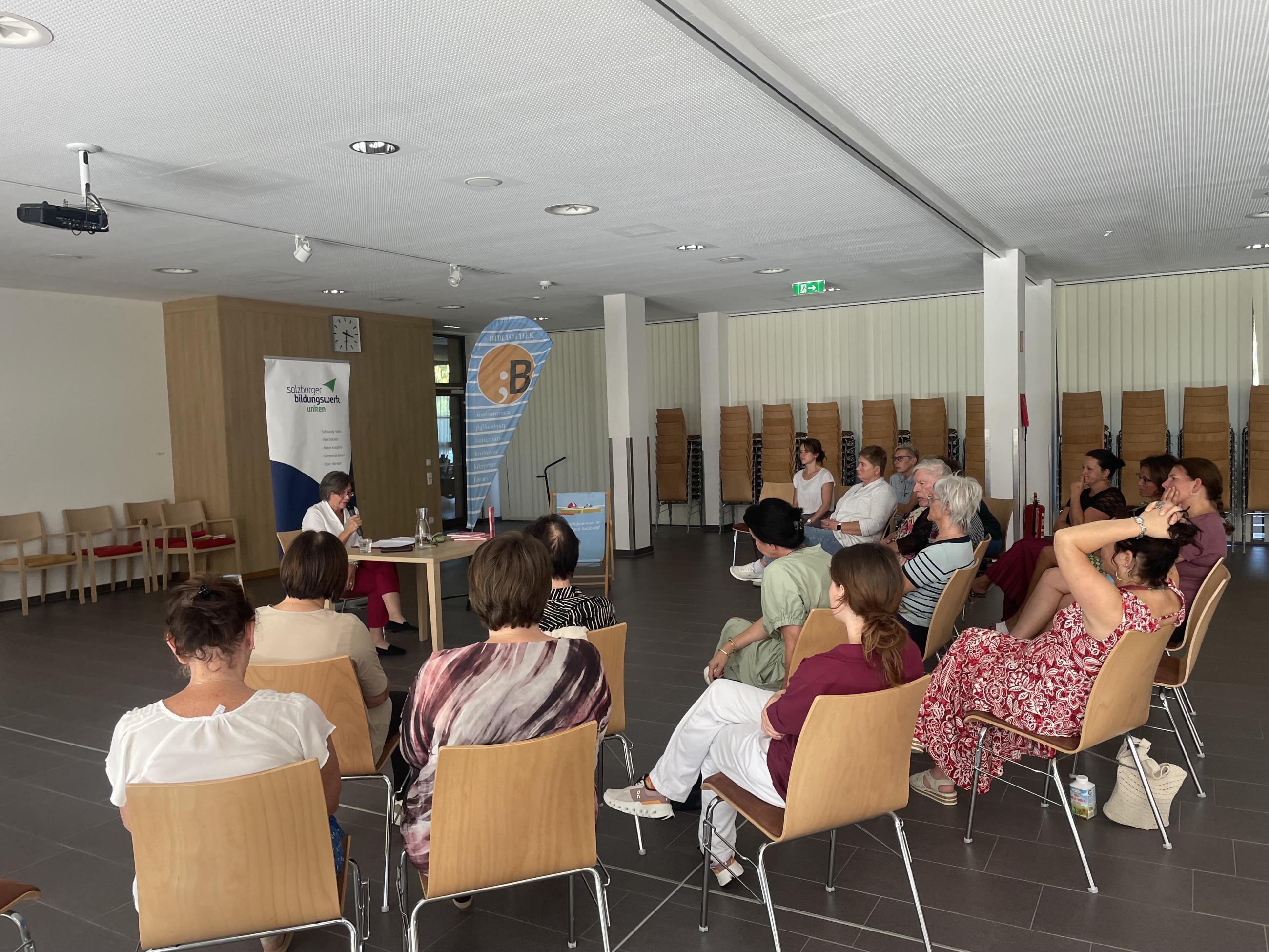 Am 20. September sind Barbara Bachler und Thomas Bachler (Jazz-Gitarrist und Pianist) ins Haus der Generationen Lofer gekommen und haben gemeinsam den Vortrag gestaltet. Die Autorin erzählte uns ihre persönlichen Erfahrungen zum Thema „Die fabelhafte Welt meiner Mama“, Leben mit Demenz und Begleiten ohne Burnout.