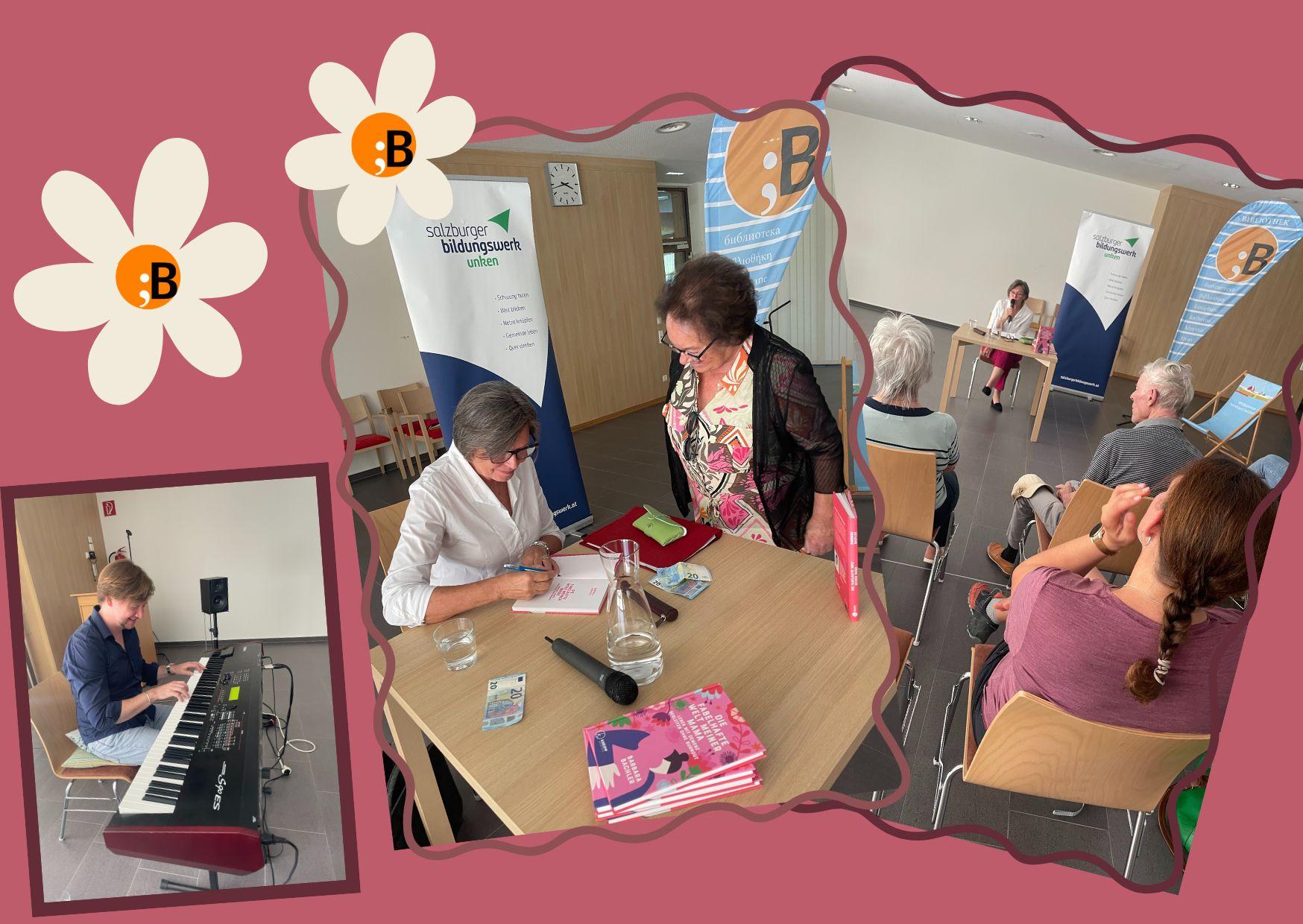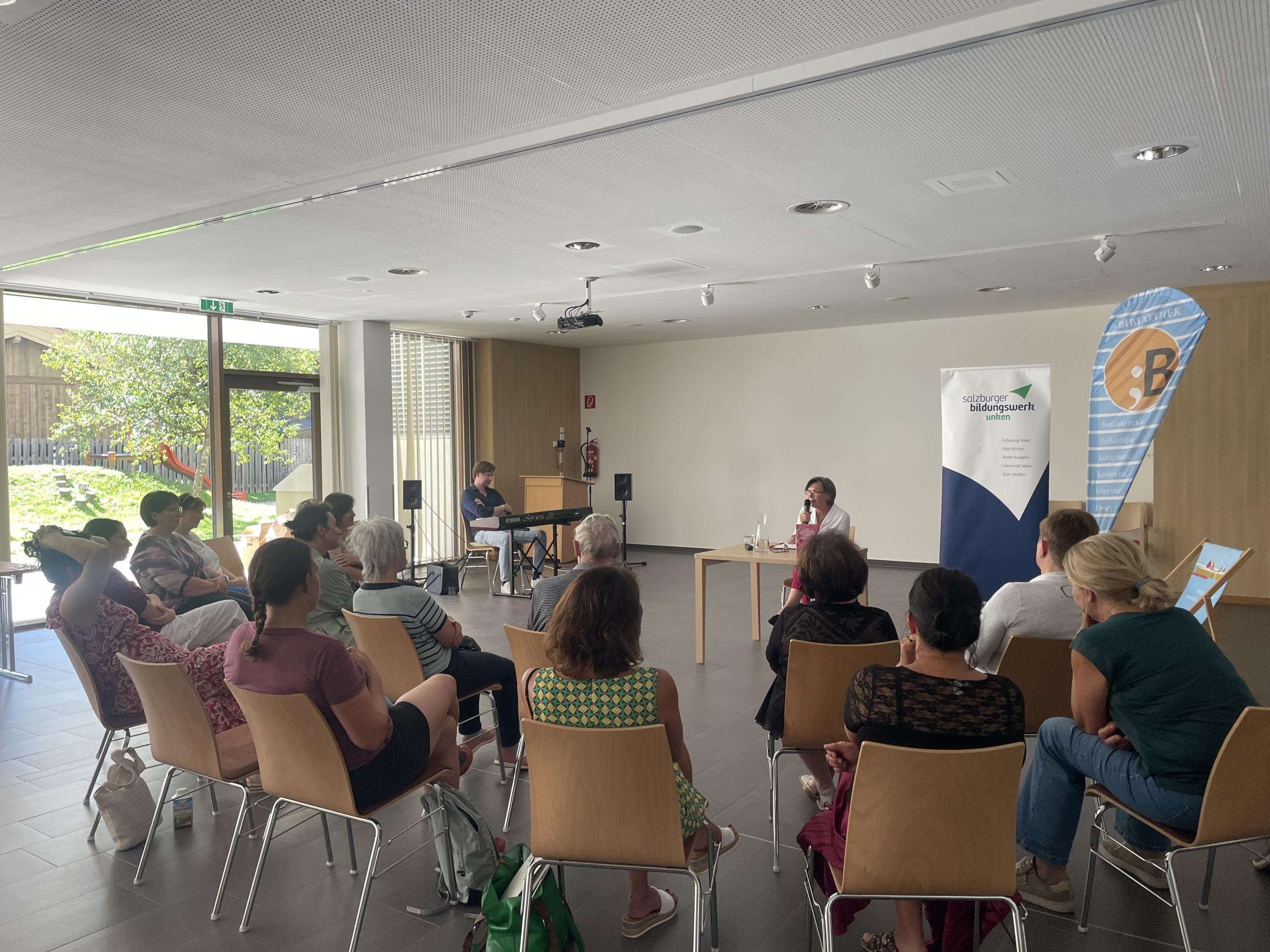 Am 20. September sind Barbara Bachler und Thomas Bacher (Jazz-Gitarrist und Pianist) ins Haus der Generationen Lofer gekommen und haben gemeinsam den Vortrag gestaltet. Die Autorin hat uns ihre persönlichen Erfahrungen zum Thema „Die fabelhafte Welt meiner Mama“, Leben mit Demenz und Begleiten ohne Burnout erzählt.